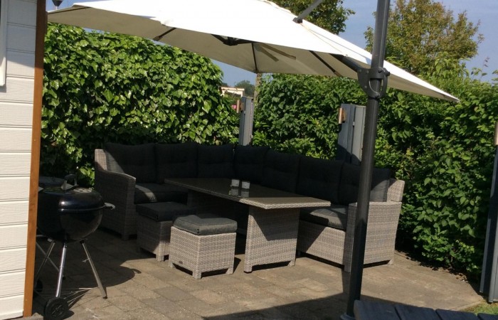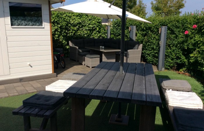 Wir vermieten unser Chalet Pauw 705 auf dem 5 Sterne-Campingplatz Julianahoeve in Renesse/ Zeeland, an der holländischen Nordseeküste.